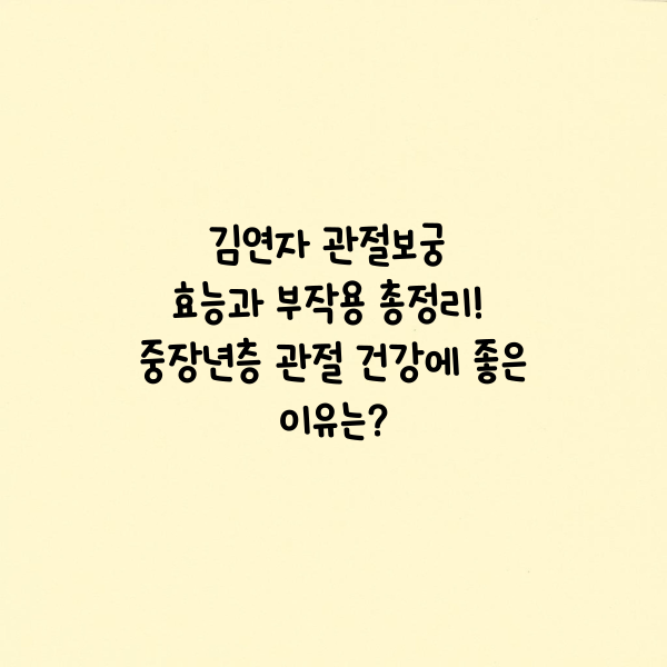 오늘은 트로트 여왕 김연자 씨가 모델로 활동 중인 관절 건강기능식품 **‘김연자 관절보궁’**에 대해 자세히 알아보겠습니다. 관절보궁의 구성 성분, 효능, 부작용, 실제 후기 등 다양한 정보를 담았으니 중장년층 건강관리에 관심 있는 분들이라면 꼭 끝까지 읽어보시길 바랍니다.