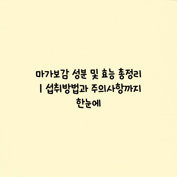 이번 포스팅에서는 마가보감에 들어있는 주요 성분과 각각의 효능, 그리고 섭취 방법과 부작용 주의사항까지 상세하게 정리해 드리겠습니다.