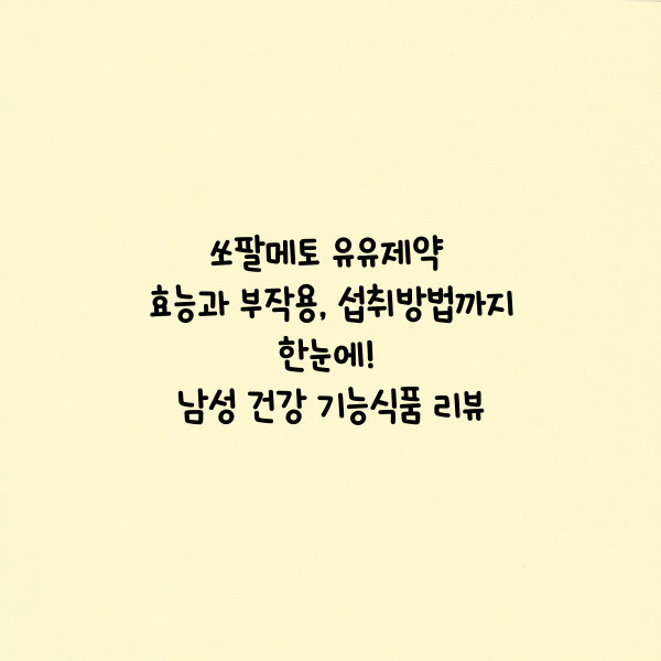 쏘팔메토 유유제약 효능과 부작용, 섭취방법까지 한눈에! 남성 건강 기능식품 리뷰