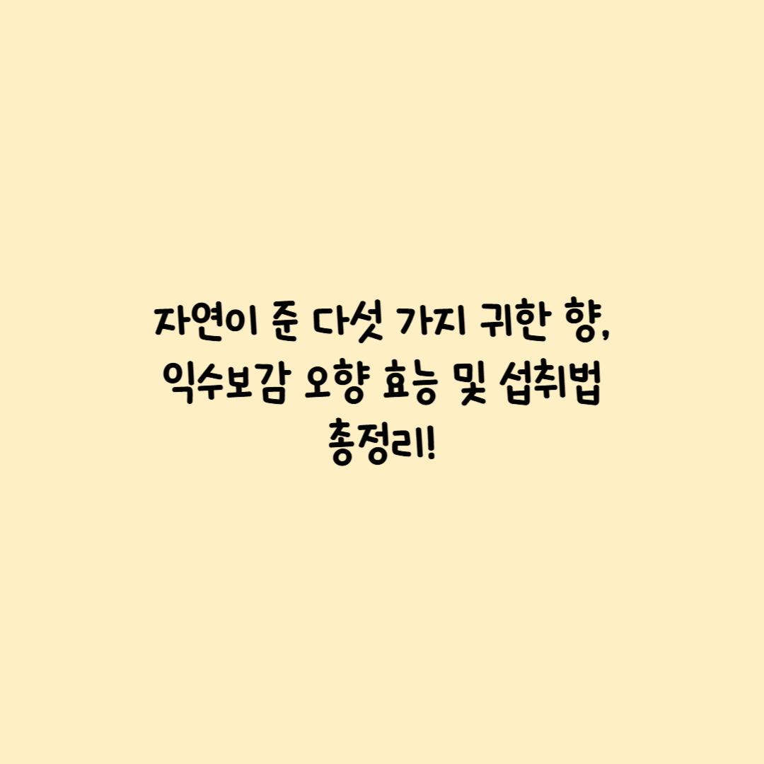 바쁜 현대사회 속에서도 몸과 마음을 다스리고 싶은 분들이라면, 익수보감 오향을 통해 5주간의 힐링 루틴을 시작해보세요.