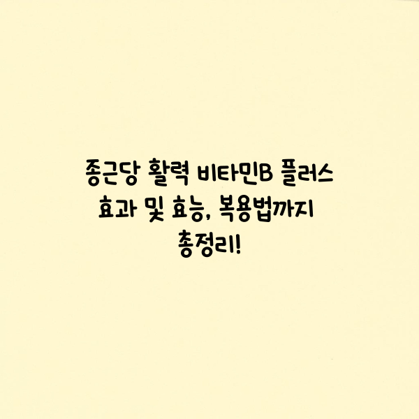 오늘은 **국내 대표 제약사 종근당에서 출시한 '종근당 활력 비타민B 플러스'**에 대해 소개드리겠습니다. 이 제품은 어떤 비타민이 함유되어 있고, 실제로 어떤 효능이 있으며, 어떻게 복용하는 것이 좋은지, 그리고 왜 구매할 만한 가치가 있는지까지 하나하나 상세하게 설명드릴 테니, 피로와 스트레스로 지쳐 있는 분들은 꼭 끝까지 읽어보세요.