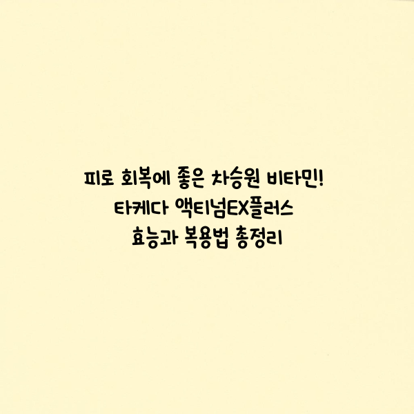 직장생활, 육아, 공부, 재택근무까지… 요즘 현대인들의 하루는 너무나 바쁘고 지치기 쉽습니다. 특히 스트레스가 많고 몸이 쉽게 피로해지는 분들에게는 비타민 보충이 필수인데요. 그래서 오늘은 많은 사람들에게 ‘차승원 비타민’으로 알려진 타케다 액티넘EX플러스에 대해 알아보려고 합니다.
